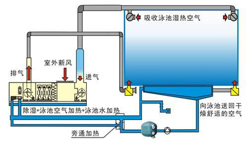 室內泳池恒溫除濕熱泵流程圖