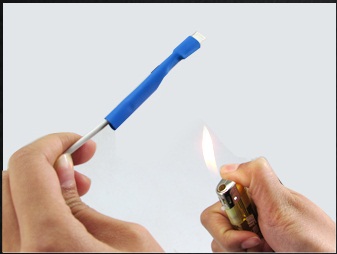 第三歩:熱縮套管套好之后,用打火機對熱縮管進行加熱,或者使用高倍率熱風槍對套管進行均勻的加熱。